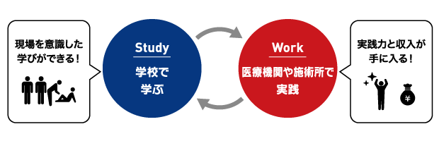 関東柔道整復専門学校で学びながら研修先でアルバイトを行うワーク&スタデイ。