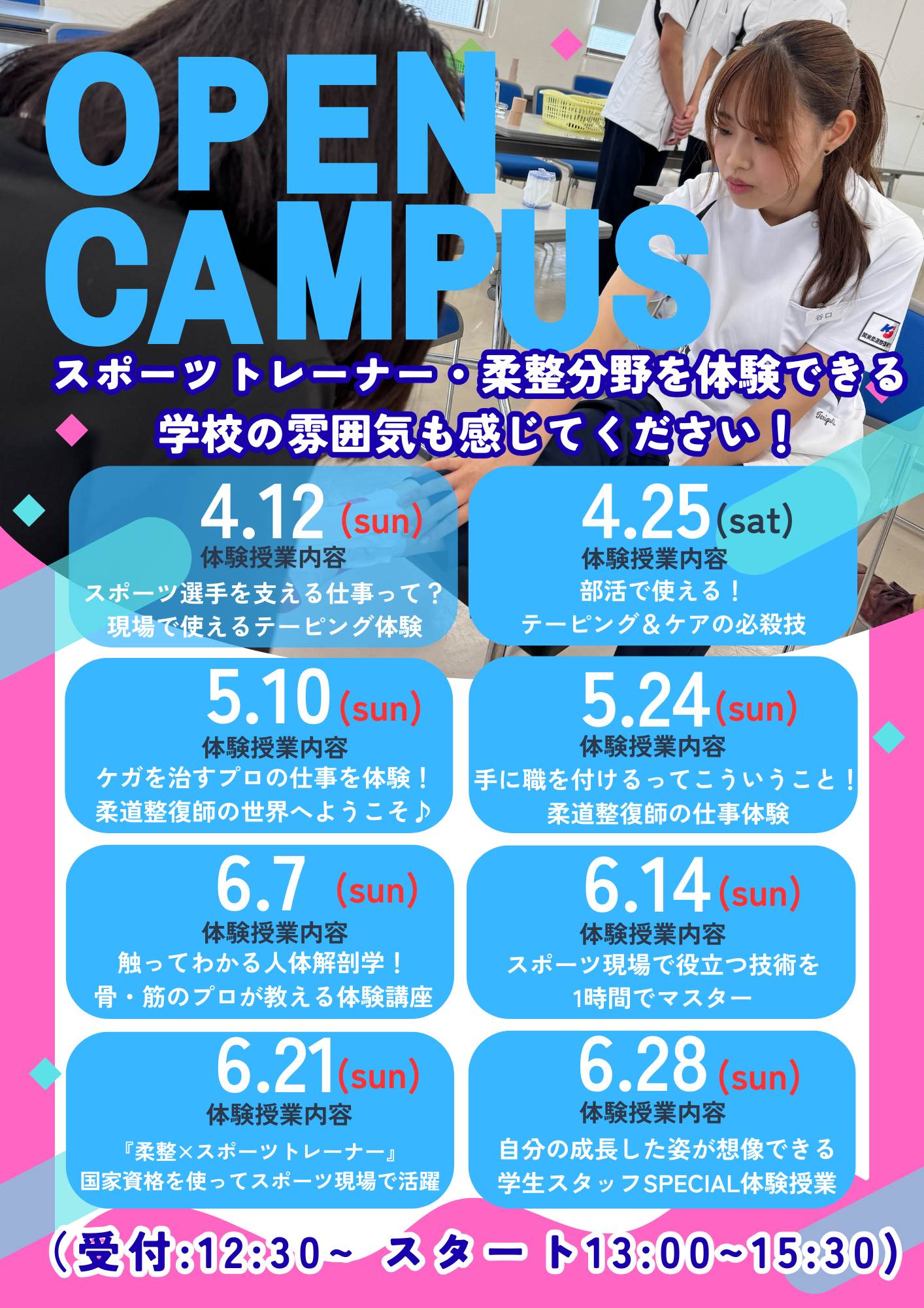 13:30~柔道整復師学科体験授業(当日の状況で変更になります。)